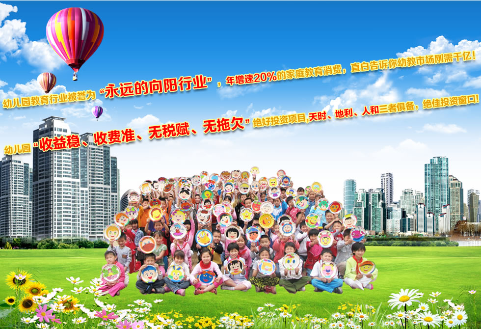 第一种:你马上加盟,抢占先机,生源倍增,利润倍增,你的幼儿园越做越大,很快你就开起了连锁分校,在一年内,你多赚了几十万,几百万,从此你的人生进入一个全新的境界,成就了教育梦想,享受非凡人生……