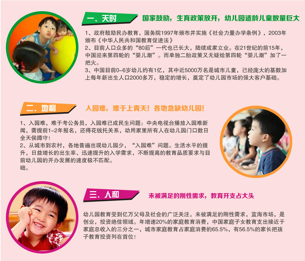 我们的目标是在最短的时间帮助更多的加盟连锁幼儿园,为您解决创业和园所运营的所有问题,让您快速掌握核心秘诀,快速成功办学,快速提升经营,快速成功!